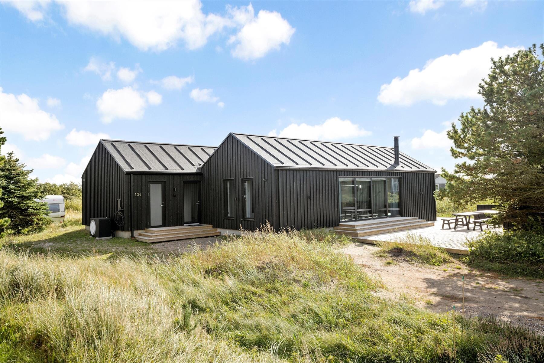 Hus-ID: 0038Hvis du elsker moderne arkitektur, elegant design og tilbagelænet livsnyderi, kan du glæde dig til at holde ferie på Lakolk 124. Her på adressen finder du nemlig et rigtigt kvalitetssommerhus, der er opført i 2024 og udstyret med de lækreste faciliteter – inklusiv et udendørs wellness-miljø på den store terrasse.