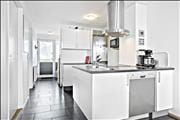 Ferieboligen, der måler 62 m2, ligger i lejlighedskomplekset Skansen fra 2009. Lejlighedens interiør er flot afstemt til den moderne arkitektur, så I får en særdeles indbydende ramme om ferielivet. Alle rum er lyse og velindrettede – selv entréen, som er udstyret med garderobeskabe samt vaskemaskine og tørretumbler. Fra entréen er der åben forbindelse til opholdsrummet, hvor et pænt køkken er integreret med en dejlig stue. Her er der biopejs, når I vil skrue op for hyggestemningen, og der er TV med Chromecast, hvis I trænger til at afslutte dagen med en god film. Planløsningen byder for øvrigt også på et badeværelse med bruseniche og et soveværelse med dobbeltseng.