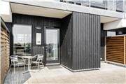 På begge etager er det muligt at træde direkte ud i det fri. I stueplan kan I slå jer ned på den østvendte terrasse eller den vestvendte altan, hvor I kan kigge ned på Havnebys hyggelige torv. Hvis I hellere vil nyde havneudsigten lidt fra oven, skal I vælge førstesalens østvendte altan.