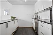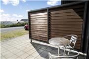 Ferieboligen, som er opført i to plan, ligger i et flot lejlighedskompleks fra 2009, der bærer navnet Skansen. Inden døre kan I brede jer på 124 m² fordelt på to etager. Planløsningen er gennemtænkt, så der er for eksempel badeværelse på begge etager, mens de tre soveværelser er samlet på første sal. I stueplan er størstedelen af kvadratmeterne dedikeret til det førnævnte opholdsrum, hvor køkkenet er integreret med stuen. Høje vinduespartier sørger for gennemstrømmende lysindfald fra øst og vest, og den gode loftshøjde bidrager til den behagelige atmosfære. Som en praktisk detalje er der også et bryggers med vaskefaciliteter i stueplan, så I kan friske garderoben op i løbet af ferien.