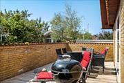 Leg og glade dage er der også god plads til i haven, som blandt andet byder på et gyngestativ og en sandkasse. Husets sydvendte terrasse er ligeledes afskærmet af murværk og udstyret med liggestole, parasol, grill og pæne havemøbler, og i indkørslen er der god plads til parkering.