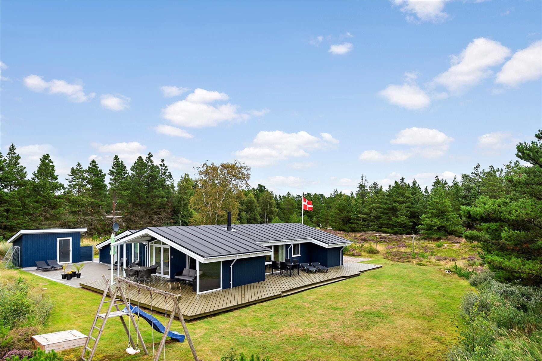 Her I sommerhuset bor I med lilla lyng og stedsegrønne fyrretræer lige udenfor vinduerne, og bare udsigten i sig selv kan hurtigt hjælpe jer med at komme ned i tempo og i den rette feriestemning. Det samme kan selve ferieboligen, der er indrettet på ægte sommerhusmanér med lyse trævægge, brændeovn og andre hyggeskabende detaljer. Udover brændeovnen kan en energisparende varmepumpe tages i brug på kolde dage, og den kan for øvrigt også køle, hvis det bliver for hedt om sommeren. Planløsningen er særdeles velfungerende, for køkken og stue er slået sammen i et – så det er med andre ord det oplagte samlingspunkt, når I vil hygge jer med madlavning, måltider, en god film eller andre ferieaktiviteter. På husets to soveværelser kan I få en god nats søvn i de komfortable dobbeltsenge, og også på badeværelset er der gjort lidt ekstra ud af indretningen, for her er der på luksuriøs vis installeret et dampbad.