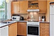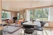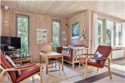 Takket være den rare atmosfære og komfortable indretning er sommerhuset sådan et, du hurtigt kan føle dig hjemme i. Vinduerne sørger for et godt lysindfald og en fin udsigt til de grønne naturomgivelser, ikke mindst i opholdsafdelingen, der udgør en stor del af sommerhusets 60 m². I opholdsrummet ligger køkken og stue i åben forbindelse, så selv når du laver mad, kan du tage del i familiehyggen og følge med i ferieaktiviteterne, der foregår omkring spisebordet eller i sofaafdelingen. Når det er sengetid, kan du gå til ro på sommerhusets tre soveværelser, hvoraf det ene er indrettet med to enkeltsenge. De to andre soveværelser er udstyret med køjesenge, hvis størrelse er bedst egnet til børn. Et badeværelse med bruseniche hører for øvrigt også med til planløsningen.