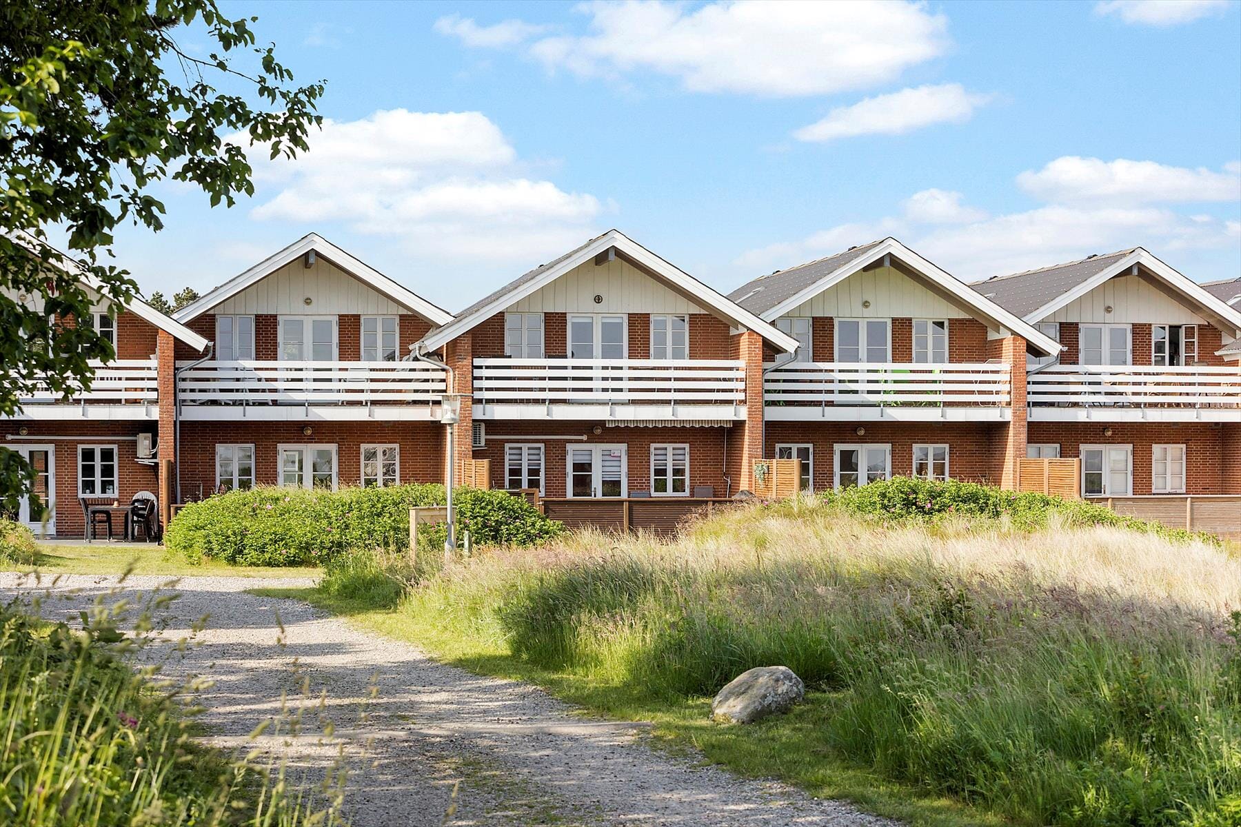 Fra stuen kan du træde lige ud på den tilhørende terrasse, der skærmes af hegn ind mod naboerne, men ellers er holdt åben, så du kan nyde det grønne landskab. Der er gode havemøbler og liggestole til rådighed, og hvis det ligefrem er for varmt at sidde i solen, kan du slå parasollen op og slappe af i skyggen, mens du overvejer, hvad der skal på grillen til aftensmad. Trænger du og familien til at komme op af havestolene, er der petanquebane, tennisbane, bordtennisbord og boldbaner i feriecentret, og fællesfaciliteterne