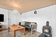 Dette lille hyggelige bindingsværkshus er i to etager. I Stueplan finder I en entré, et badeværelse med bruser og toilet. En stor stue, med brændeovn, fjernsyn og sofaarrangement. Ved siden af stuen ligger det ene soveværelse, her er der en lille dobbeltseng. I stuetagen finder I også et køkken med spiseplads. Der er udgang til den delvist overdækkede terrasse fra trapperummet. På 1 sal er der et gennemgangsværelse, med to enkeltsenge som egner sig godt til børn. Videre kommer man ind i det store soveværelse, hvor der er en dobbeltseng. Huset er hyggeligt indrettet med et godt mix af nye møbler og klassiske materialer.