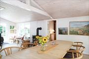Indendørs fremstår sommerhuset lyst og særdeles hyggeligt. Der er tre gode soveværelser og tilhørende anneks. Husets hjerterum er den store stue, hvor der er åben forbindelse til køkkenet. Det er her alle kan samles om bordet og nyde en lækker brunch inden dagens aktiviteter og samles om aftenen til aftenhygge med brætspil og gode historier. I dette sommerhus er der mulighed for at flere generationer mødes, for sammen at holde ferie.