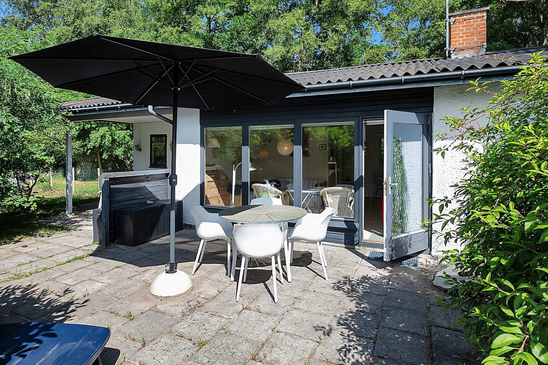 På den skønne terrasse, der er opdelt i en overdækket og en åben afdeling, kan du nyde solen fra morgen til aften.