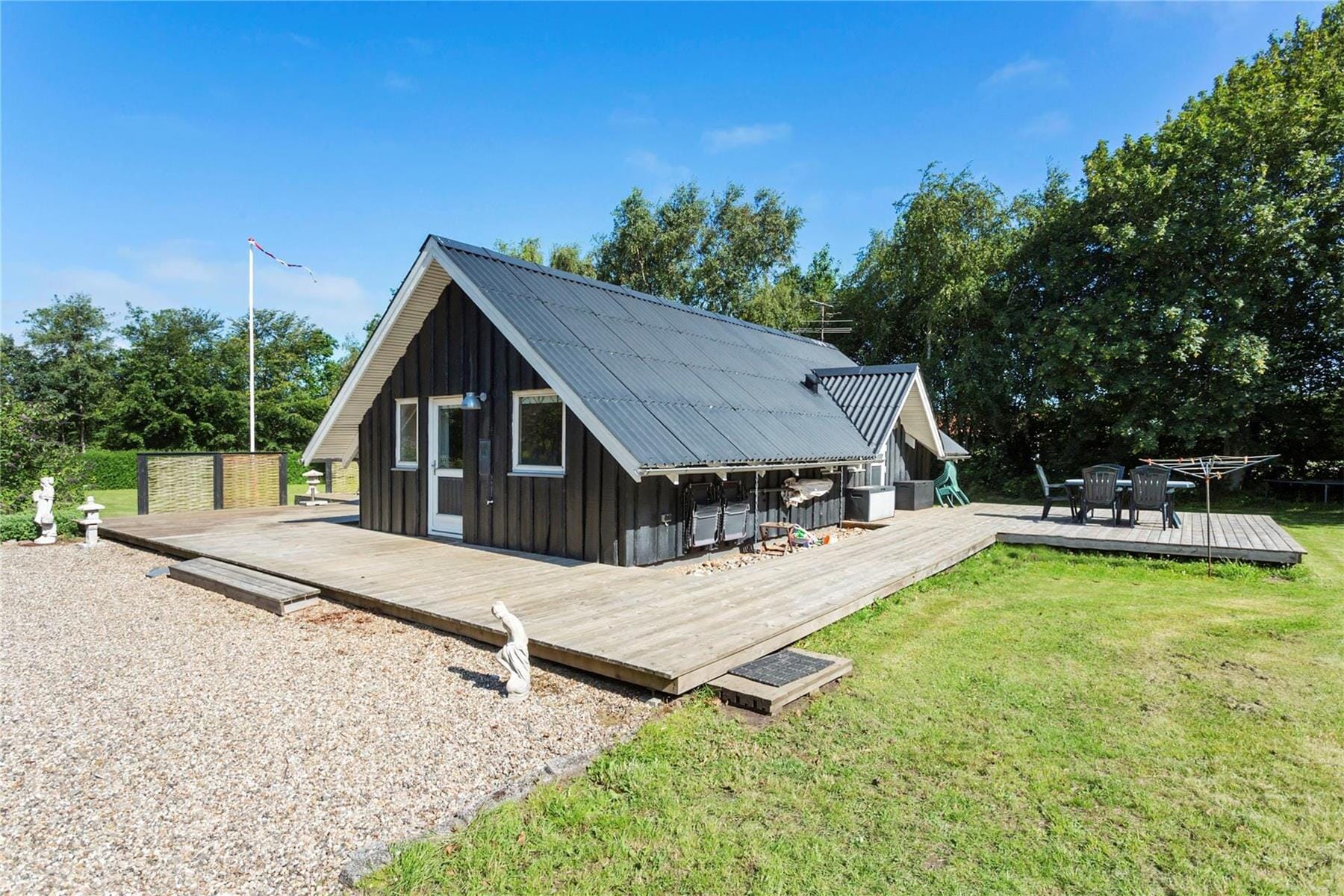 Fra stuen har I direkte adgang til en stor træterrasse, der breder sig rundt om huset. Det gør det nemt at finde den helt rette opholdsplads i solen – og hvis I trænger til skygge, når I får en middagslur i ligge stolene, kan I slå parasollen op. Der er desuden grill og havemøbler til rådighed, mens børnene kan hygge sig med gynge og lege i sandkassen. Den store græsplæne på den 2.552 m2 store grund indbyder til at spille bold og andre havespil, og er I humør til en stille stund, kan I samles ved bålpladsen. Til lystfiskerne er der for øvrigt fiskerensebord.