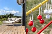 Udenfor kan I nyde sommerdagene på flere dejlige terrasser, hvor der både er mulighed for at sidde overdækket og i solen. Den overdækkede terrasse er perfekt til morgenkaffen, når duggen stadig ligger i græsset, eller til lange sommeraftener med grillmad og hygge under åben himmel – uden at bekymre sig om en lille sommerbyge. Haven er ved at blive anlagt og vil med tiden blive endnu et skønt opholdssted, hvor både børn, voksne og hund kan boltre sig. I mellemtiden kan I nyde det rolige område og naturens lyde omkring jer. Lige i nærheden finder I desuden en boldbane med både fodboldmål og volleyballnet, hvor hele familien kan få sved på panden og grine sammen i den friske luft. Terrasserne indbyder til nærvær og samtaler, mens solen bevæger sig hen over himlen, og når mørket falder på, kan I trække tæpperne om jer og nyde den særlige ro, der kun findes i et sommerhus tæt på vandet.