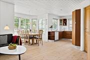 I stueplan entré med tilhørende bryggers og adgang til stort badeværelse med bruser. Køkkenalrum med hyggekrog, Tv-afdeling, brændeovn og spiseplads med havudsig og terrassedør med udgang til haven. Trappe til 1. sal med endnu et badeværelse, samt tre soverum, hvoraf det ene er med enkeltseng. Lille opholdsstue med udgang til balkonen, hvorfor havudsigten kan nydes.