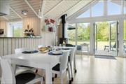 Køkkenet er et dejligt åbent køkken, hvor du kan stå over gryderne og samtidig tale med de andre ved spisebordet eller i stuen. I køkkenet er der god bordplads og alt hvad du skal bruge, når feriens måltider skal tilberedes.