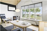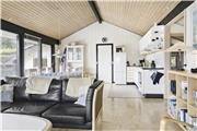 Fra entreen kan man komme til wc og badeværelse der er i hver sit rum og begge med gulvvarme. Man kan også komme ind i det ene soveværelse eller gå ind i den store lyse stue med bluetooth højtaler og DVD. Åbent køkken med elkomfur, el-ovn og microovn. Fra stuen er der udsigt til have og havudsigten, samt direkte udgang til terrassen.