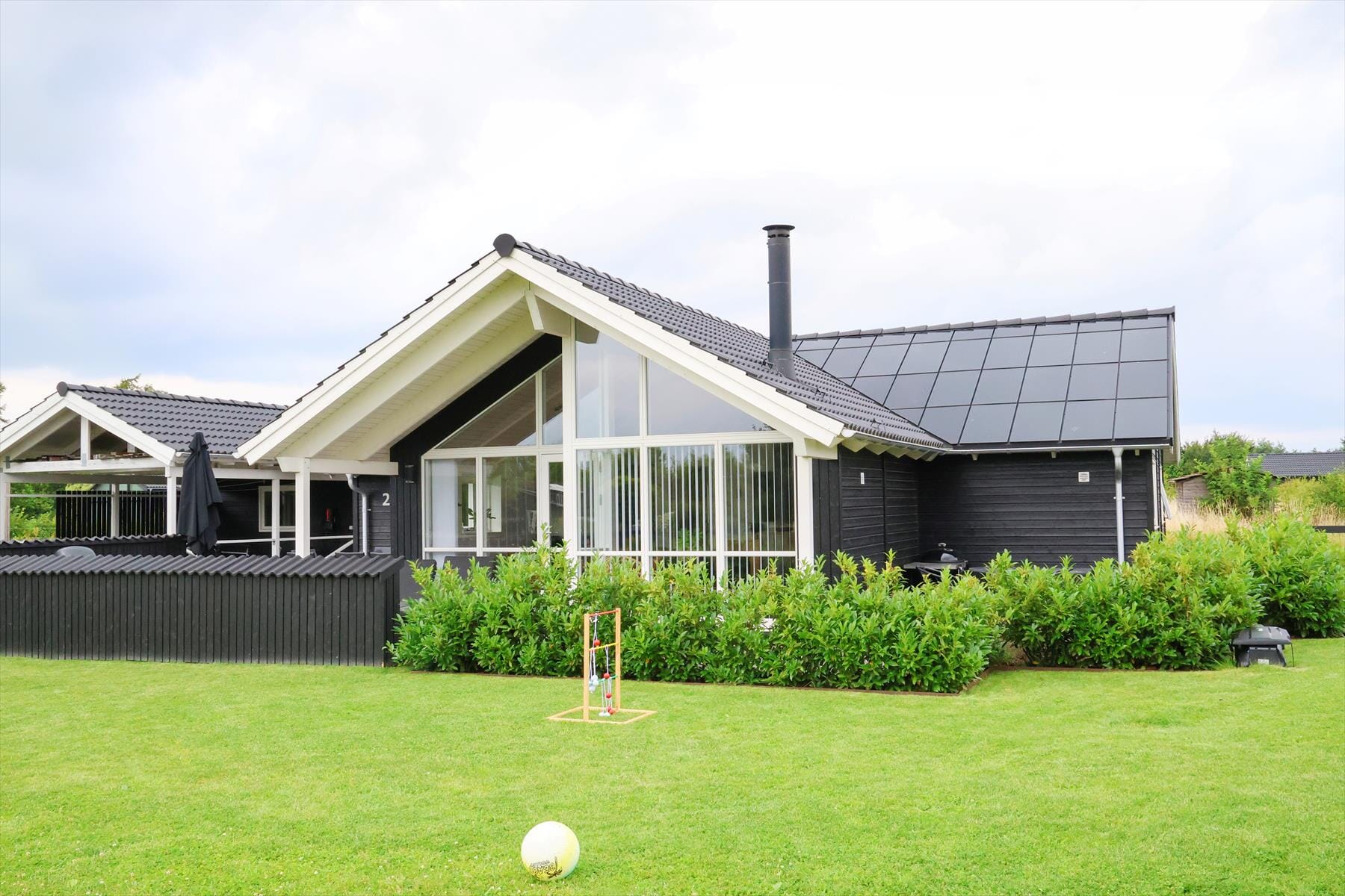 Udendørs kan du benytte sommerhusets store træterrasse, her kan du ligge og slikke sol eller fordybe dig i en spændende krimi, mens solens stråler giver dig den helt rigtige kulør. Når duggen falder i løbet af aftenen, så er der en god overdækket terrasse at sidde på. I haven der er indhegnet og dermed også velegnet til din hund, er et spil badminton en god mulighed for et godt grin.