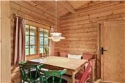 Hyggelig opholdsstue med brændeovn, her kan du slappe af med en god bog. Separat køkkenafdeling med fin spiseplads og 2 værelser, det ene med dobbeltseng, det andet med to sengepladser. I stuen er der Smart Tv med Netflix.