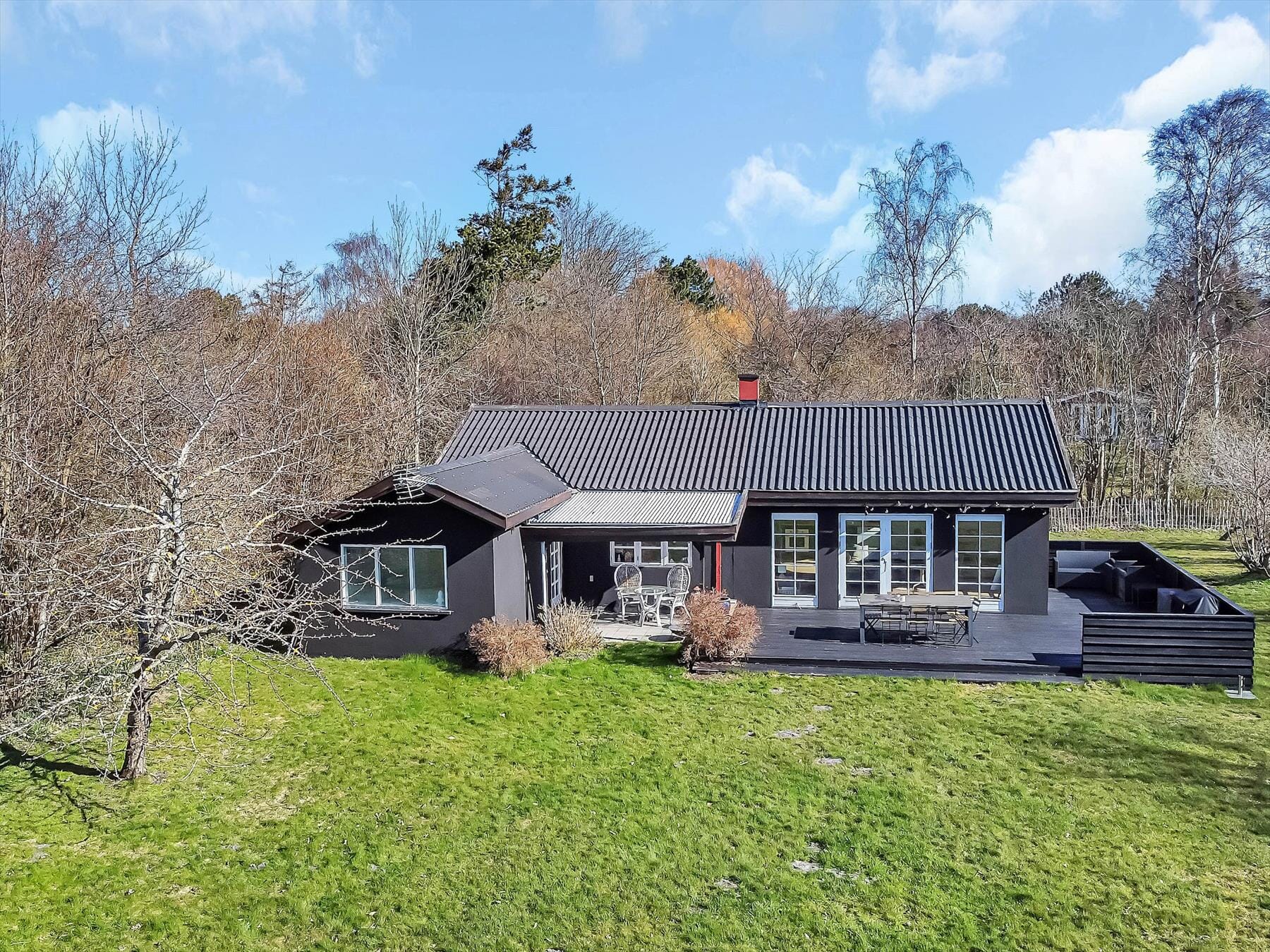 Sommerhuset er beliggende for enden ad en blind vej i et roligt område på en stor grund med masser af plads til udendørs aktiviteter. Grunden er med god randbeplantning, så du kan sidde ude i ugenerte omgivelser og nyde solen. Er det blevet tid til en dukkert, så er det bare at smide håndklædet over skulderen og så er der kun 400 meter til vandkanten. På de gode terrassearealer med sydvest kan solen nydes i fulde drag, og når aftenduggen falder, så kan du finde ly på husets overdækkede terrasseareal.