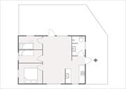 Feriehuset er indrettet med entre, soveværelse med dobbeltseng, værelse med enkeltseng og børneværelse med køjeseng. Der er badeværelse med brus og i forbindelse med stuen er der et fint åbent køkken. Alt fremstår lyst og indbydende. Der er en dejlig stor delvist overdækket terrasse til huset.