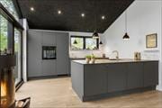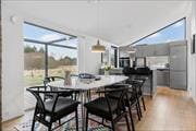 Når du træder ind ad døren, mærker du straks den lyse og imødekommende atmosfære, som gør det nemt at finde feriestemningen frem. Indretningen er hyggelig og smagfuld med en fin balance mellem klassisk sommerhuscharme og moderne komfort. Det lyse opholdsrum danner rammen om samværet – her kan I nyde en kop kaffe i sofaen, spille spil ved spisebordet eller varme jer foran brændeovnen, mens I lytter til naturens stille sus udenfor. I stuen er der desuden en hyggelig alkove, hvor man kan tage en middagslur, læse en god bog eller lade børnene hygge sig med tegnefilm. Køkkenet ligger i åben forbindelse med stuen, så samtalen kan fortsætte, mens du laver mad, og med to badeværelser er der god plads til, at alle kan få en behagelig start på dagen – det ene badeværelse ligger i annekset, som dermed fungerer perfekt som en selvstændig afdeling for dem, der ønsker lidt ekstra privatliv. Det tilhørende anneks byder desuden på ekstra sovepladser og giver mulighed for, at nogle i selskabet kan trække sig lidt tilbage og nyde roen, når behovet melder sig.