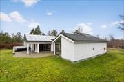 Udenfor venter sommerhuslivet i sin mest fredelige form. Huset ligger på en ugeneret naturgrund med høje træer og grøn bevoksning, der giver privatliv og en følelse af at være midt i naturen. På terrassen kan du nyde morgenkaffen til fuglefløjt og solstrejf, læse en god bog i liggestolen eller gøre klar til grillhygge og lange aftener under åben himmel. Flere terrasseområder giver mulighed for at finde både sol og skygge, alt efter humør og tidspunkt på dagen – og uanset om du er til rolig afslapning eller leg med børnene i det fri, får du rammerne til det her. Det er den slags omgivelser, hvor skuldrene automatisk sænker sig, og hverdagens travlhed bliver erstattet af nærvær og natur.