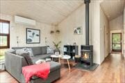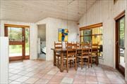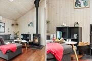 Når du træder ind i sommerhuset, mærker du straks den lette og lyse stemning, som er med til at sænke skuldrene og få dig helt ned i gear. Store vinduespartier trækker naturen ind i rummet og fylder stuen med dagslys, mens den åbne planløsning sørger for, at der er god forbindelse mellem opholdsrum og køkken. Midt i rummet står brændeovnen klar til at sprede varme og hygge – perfekt til en stille stund med kortspil eller samtaler over et glas vin. Når aftenen falder på, og kroppen har brug for lidt ekstra forkælelse, kan du sætte kurs mod husets spa og sauna – og bagefter smutte i seng i et af de tre gode soveværelser, hvor der er ro og komfort til hele familien.
