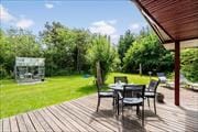 Den store naturgrund omkranses af tæt randbeplantning, så uanset om du og dine kære er i gang med at spille havespil, grille eller bare slappe af, kommer det til at foregå i ugenerede omgivelser. Ved huset ligger der en stor og solrig terrasse, hvor en betydelig del af driverlivet oplagt kan udspille sig. En havepavillon i glas er den perfekte opholdsplads, hvis du er på udkig efter læ og samtidig vil have frit udsyn til grundens frodighed - og her kan du og familien for øvrigt passende blive siddende om aftenen i timevis uden at skulle tænke på, om duggen falder.