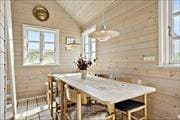 Dejligt veludstyret køkken i åben forbindelse med stue og spiseafdeling. Stuen er hyggeligt og personligt indrettet med sans for de små detaljer og med møbler og lamper af anerkendte danske designere. Her er brændeovn og fladskærms-tv med danske og tyske kanaler og en Playstation3. Fra stuen er der udgang til den skønne udestue, der også er indrettet med danske klassikere, her er skønt at sidde hele året rundt og følge naturen og de forskellige årstider. Der er i alt to soveværelser med faste skabe - den ene har en dobbeltseng og udgang til en lille terrasse og det andet soveværelse har en køjeseng. På 1. sal er der en hems med madrasser, hvor børnene kan lege og hygge sig, læse en god bog eller bare være sig selv uden forældre. Det lyse badeværelse byder på bruser, WC, vaskemaskine samt adgang til saunaen.