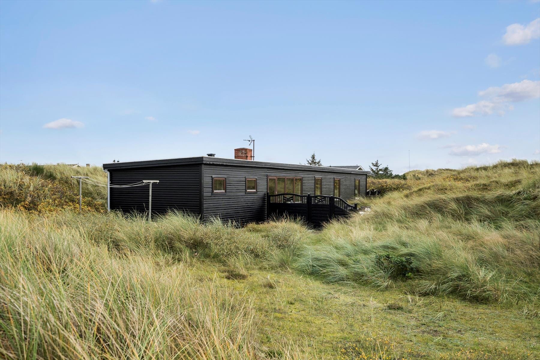 Der er lagt op til mange skønne afslapningsstunder på de mange lækroge og terrasseområder, der ligger fordelt rundt om sommerhuset. Hybenbuske og klitter skærmer udearealerne godt af, så I kan sole jer og spise sommerfrokost på ugeneret vis, og hvis I trænger til mere udsyn, kan I bestige klittoppen vest for huset, for her kan I se langt ud over det kuperede landskab og helt til Ringkøbing Fjord mod øst.