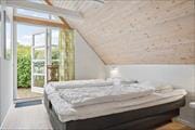 Sommerhuset er indrettet med loft til kip og frilagt hanebjælker, der sammen med rustikke klinkegulve skaber en hyggelig og rar atmosfære. Den store, åbne opholdsafdeling har et skønt lysindfald fra de mange vinduespartier, og her er mange hyggelige kroge, hvor I kan slappe af med en god bog i en lænestol eller en spændende film i sofaerne, mens brændeovnen varmer. Køkkenet er rummeligt, veludstyret og byder på en opvaskemaskine, og retterne serveres let både ved spisebordet eller på den sydvendte terrasse. I feriehusets ene ende findes en soveafdeling med to værelser, og i den modsatte findes yderligere et værelse. Desuden er her en hems ved køkkenet, hvor de yngste kan sove eller indrette en hyggelig læse- og legehule. Badeværelset er indrettet med bruseniche og vaskemaskine, og her er yderligere et toilet samt et depotrum med fryser.