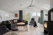 Hus-ID: 091Dette dejlige træsommerhus blev i 2013 totalrenoveret og fik tilmed en tilbygning og der er lavet yderligere forbedringer i 2025, så det i dag fremstår som en pæn, rummelig og velindrettet feriebolig til seks personer. Beliggenheden har selvfølgelig ikke ændret sig, og det gør bestemt ikke noget, for huset ligger i bunden af en lukket vej med nem adgang til Vesterhavet og Søndervigs bymidte.