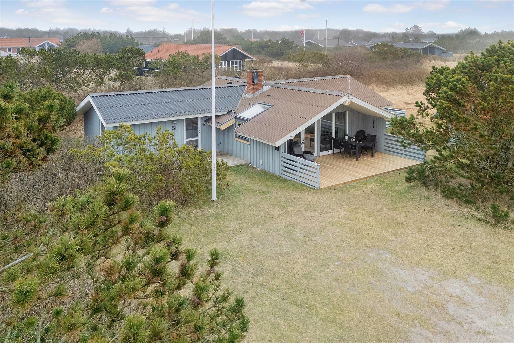 Alt ånder fred og idyl på den lukkede P. Snejkers Vej, hvor sommerhuset ligger i bunden af en lille sidevej. Vil I ned til stranden, kan I skyde genvej via en lille sti, så der er ikke meget mere end en kilometer til Vesterhavet og Søndervigs smukke sandstrand. I har også nem adgang til den nærmeste put and take-sø, og hvis I vil på en naturskøn gå- eller cykeltur, kan I begive jer over Bagges Dæmning, der krydser den nordlige ende af Ringkøbing Fjord. I bil kommer I hurtigt ind til Søndervigs bymidte – og der er for øvrigt gode cykelstier, hvis I vil tage den tohjulede ind for at spise is eller spille minigolf. I kan også køre sydpå gennem Holmsland Klits lyngklædte hedelandskab, indtil I når den charmerende fiskerby Hvide Sande.