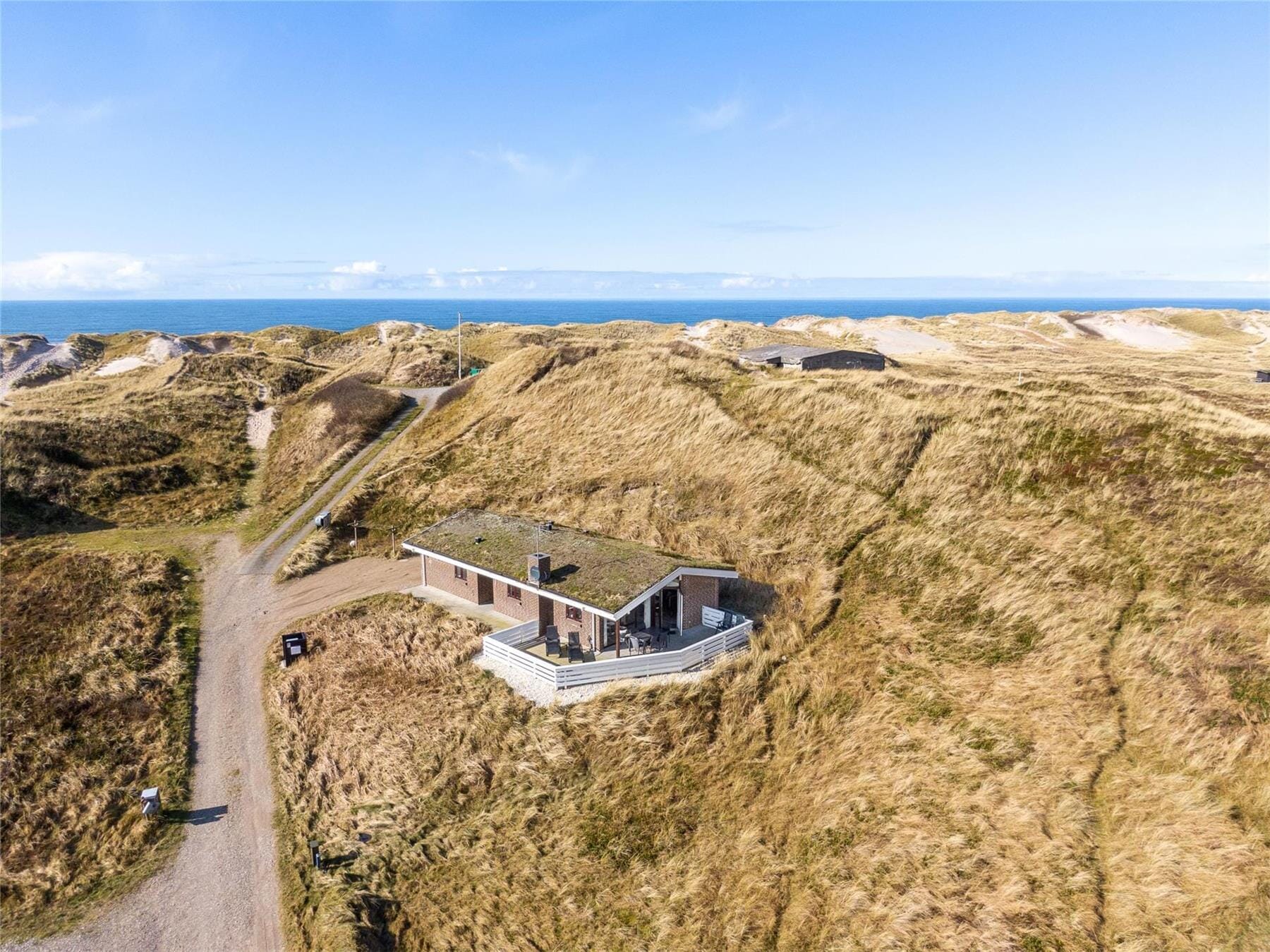 Sommerhusets store, aflukkede og delvist overdækkede terrasse er orienteret mod syd og øst, så I får mest muligt ud af naturudsigten og dagens solskinstimer. Når solen begynder at sænke sig på himlen, kan I dække op ved havebordet og tilberede aftensmaden på grillen, mens I nyder områdets fredfyldte atmosfære. Vest for huset finder I et stort parkeringsareal, og hvis I følger stien op til klitgrundens højeste punkt, har I en storslået 360 graders panoramaudsigt over Vesterhavet, Houvigs klitter og de flade marker ud mod Stadil Fjord.