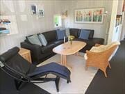 I stuen er der dejligt stort spisebord og stole, hyggeligt sofahjørne med sofa, kurvestole og sofabord. Fra stuen udgang til dejlig delvis overdækket terrasse med gode havemøbler. Plads til boldspil og leg i haven.