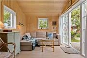Dette lille sommerhus er godt indrettet. I kommer direkte ind i stuen. Her finder I en sofa arrangement (sovesofa) og brændeovn. Huset er et rigtigt sommerhus og al opvarmning sker med brændeovnen. Der er en god spiseplads i forlængelse med stuen. Køkkenet er moderne og godt indrettet, med både stort køle/fryseskab, opvaskemaskine og godt med plads. Fra køkkenet er der udgang til terrassen. Ved siden af køkkenet er der en ophøjet dobbeltseng, perfekt til en middagslur, eller til at læse en god bog. Der er to soveværelser i huse. De har begge to køjesenge som er 80x190cm. Mellem værelserne er toilettet. Bad findes ikke i huse, men i fælleshuse som ligger lige ved siden af. Her er også vaskemaskine.