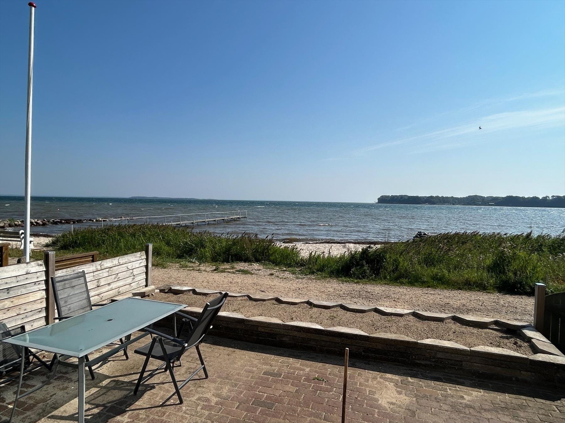 Den dejlige terrasse foran huset er det ideelle sted at slappe af og solbade, mens du nyder den skønne udsigt over vandet. Forestil dig at sidde her med en god bog og lytte til bølgernes be­ro­li­gen­de skvulpen, mens solen skinner ned på dig. Bag huset finder du endnu en Terrasse, der indbyder til dejlige stunder, det perfekte sted at grille og nyde udendørs måltider sammen med familien. Om aftenen kan du samles til hyggelige stunder ved grillen og dele historier, mens sol­ned­gan­gen maler himlen i farverne af den danske som­mer­af­ten. Både børn og voksne vil elske at tage en dukkert fra badebroen eller bygger sandslot­te på den nærliggende Hejls­min­de Strand – dette er stedet, hvor glæden er uendelig.