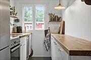 Køkken med Køl/fryseskab og glaskeramisk komfur, emhætte, opvaskemaskine, brødrister samt elkedel.