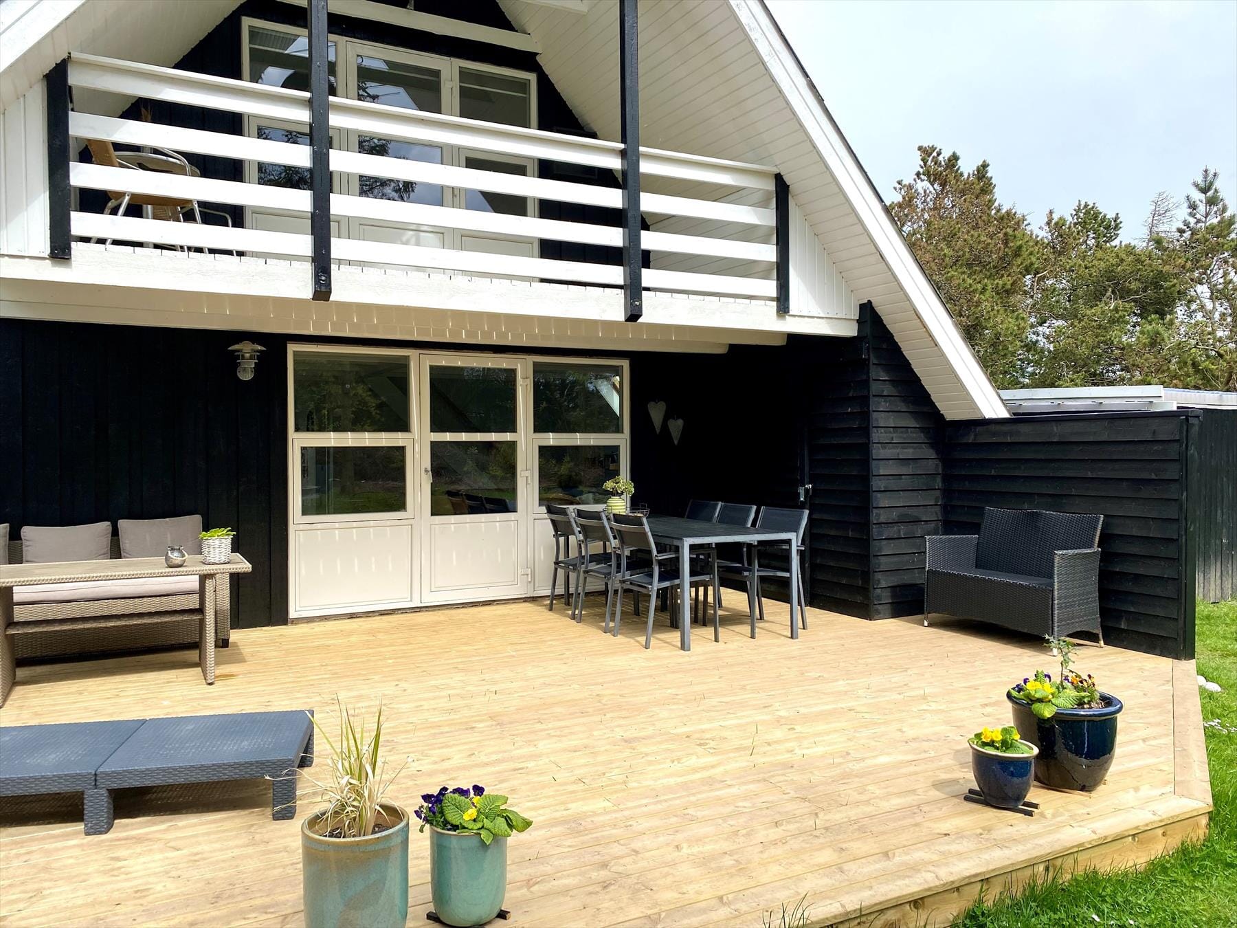 Sommerhuset ligger på en stor og velholdt grund, der indbyder til leg, afslapning og nærvær i det fri. Terrassen, som strækker sig rundt om huset, er det oplagte sted at nyde en stille morgen med friskbrygget kaffe eller en hyggelig grillaften med udsigt til solnedgangen. Med husets placering tæt på naturen vil du hurtigt opleve, hvordan fuglesang og duften af havet skaber en helt særlig ro og ferieidyl. På plænen kan børnene boltre sig, mens de voksne nyder solen eller læser en god bog i en afkrog af haven.