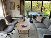 Træd ind i en hyggelig oase, hvor sommerhusstemningen møder dig allerede i entréen. Her er alt indrettet med fokus på afslapning og nærvær, så du kan lægge hverdagen på hylden med det samme. Den rummelige opholdsstue indbyder til fælles samvær, hvor I kan sprede jer i komfortable møbler, mens brændeovnen knitrer og skaber en lun stemning. Varmen fra ilden breder sig hurtigt gennem rummet og indhyller hele huset i en behagelig fornemmelse, der gør enhver aften til en særlig stund. Her er plads til både lange samtaler over et brætspil og stille stunder med en god bog. I det lyse køkken kan du fornemme duften af friskbrygget kaffe om morgenen og det gode måltid, der tilberedes, mens I deler feriens små og store oplevelser. Selv på en kølig dag emmer sommerhuset af ro og varme, så du kan finde hjemlig hygge hele året rundt.