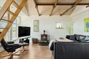 Sommerhuset emmer af ægte sommerhushygge med sin varme atmosfære og brændeovn, der bliver et naturligt samlingspunkt på kølige aftener. Når vinden rusker i marehalmen udenfor, kan du tænde op i ilden, lade flammerne danse bag ruden og mærke varmen brede sig, mens du nyder en god bog eller en brætspilsaften med familien. Stuen er rummelig og lys, og den åbne planløsning gør det let at være sammen – uanset om du står i køkkenet og forbereder aftensmaden eller slapper af i sofaen. Her er plads til op til seks personer, så der er rig mulighed for at samle familien eller tage på ferie med gode venner.