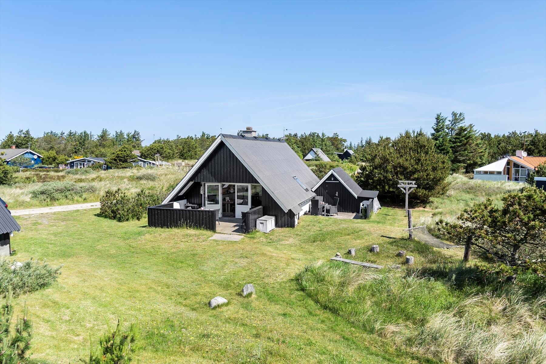Udenfor åbenbarer sig en dejlig grund, der grænser op til et fredet areal, hvilket giver en følelse af at være i ét med naturen. Be­lig­gen­de for enden af en blind vej, er her en oase af ro og fred, hvor du kan slappe af og genfinde energien. Den rummelige grund indbyder til leg og ak­ti­vi­te­ter i det fri, mens terrassen er det perfekte sted til at nyde mor­genkaf­fen i so­l­op­gan­gen eller gril­l­hyg­ge i de lune som­mer­af­te­ner. Dette er et sted, hvor hver dag byder på mu­lig­he­den for at skabe minder, du vil skatte højt.