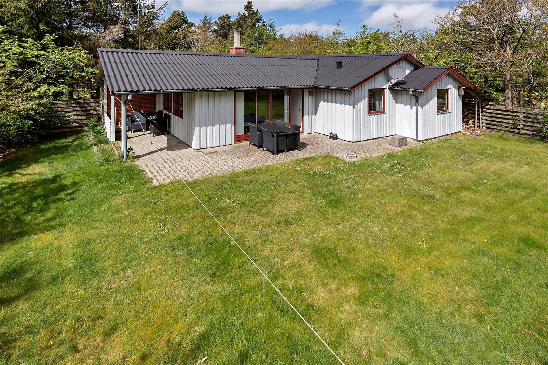 Udenfor byder sommerhuset også på skønne oplevelser i den friske, vestjyske luft. Huset ligger godt skærmet for den næsten altid tilstedeværende vestenvind. Man kan vandre langs Flade Sø og til havet hvilket er en smuk oplevelse. Er man til længere ture er traveturen omkring Flade Sø 9 km. Fra de hyggelige terrasseområder kan I suge den rå charme fra Vesterhavet til jer, mens solen langsomt bevæger sig over himlen. I de lune sommermåneder er det oplagt at indtage terrassen med en kop kaffe fra morgenstunden og måske senere fyre op i grillen for at trylle lækre feriemåltider frem. Når I sidder under åben himmel, omgivet af klitlandskaber, fuglesang og vinden, der diskret hvisker gennem området, er det, som om tiden står stille. Her er plads til både livlig leg på græsset og stille stunder, hvor du kan dvæle ved tanken om, at ferie også handler om at sætte tempoet ned og nyde nuet. Hund og kat er naturligvis også hjerteligt velkomne, så hele familien kan samles om en dejlig udeoplevelse.