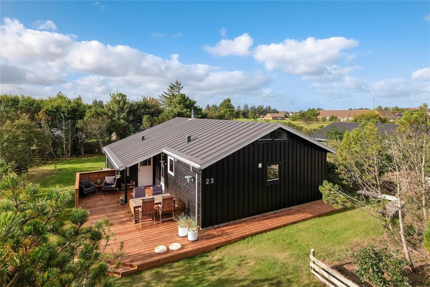 Udendørs finder du fred og ro på den lukkede vej, hvor huset ligger. Den rummelige terrasse indbyder til lange sommeraftener med gasgrill og samvær, og naturen omkring huset skaber en idyllisk ramme om ferien. Her kan du nyde din morgenkaffe, mens fuglene kvidrer, eller lade børnene lege frit på grunden uden bekymring. Beliggenheden giver også masser af muligheder for at opleve Nationalpark Thy helt tæt på – uanset om du vil cykle, gå eller bare nyde synet af de skiftende landskaber. Dejlig stort grønt område i gå afstand, der indbyder til leg og boldspil med fodboldmål.