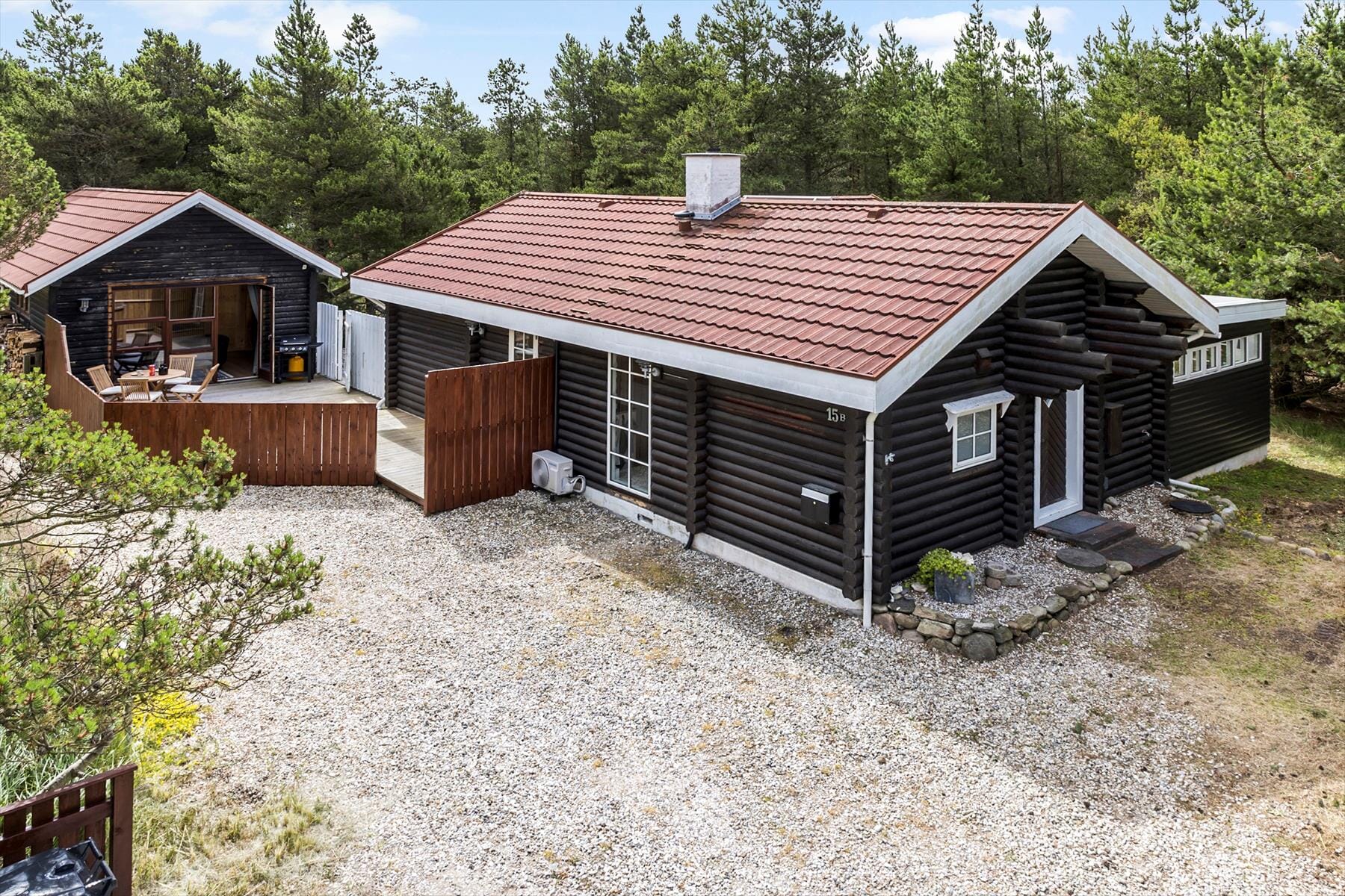 Sommerhuset ligger på en dejlig grund i et roligt område, hvor du kan trække stikket fra hverdagens travlhed. Udenfor venter en rummelig terrasse, som er perfekt til at nyde morgenkaffen med skovens fuglesang som baggrundsmusik. Haven byder på plads til både leg og afslapning – og hvis du har hunden med, er det skønt at lade den løbe frit i de trygge omgivelser. Den nærliggende skov giver dig mulighed for friske gåture eller picnic under trækronerne, mens stranden kun ligger en kort tur væk og indbyder til badeeventyr og strandlege.