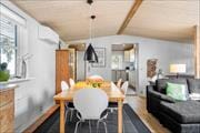 Træd ind i dette hyggelige feriehus, hvor atmosfæren straks emmer af ro og velvære. Stuen er indrettet med en charmerende brændeovn, der på kølige aftener spreder varme og samler familien til hyggelige stunder. Køkken og spiseområde ligger i åben forbindelse med stuen, hvilket gør det let at være sammen, selv når maden tilberedes. Efter en dag fyldt med oplevelser kan du forkæle dig selv med en afslappende tur i husets sauna, der giver fornyet energi og velbehag.