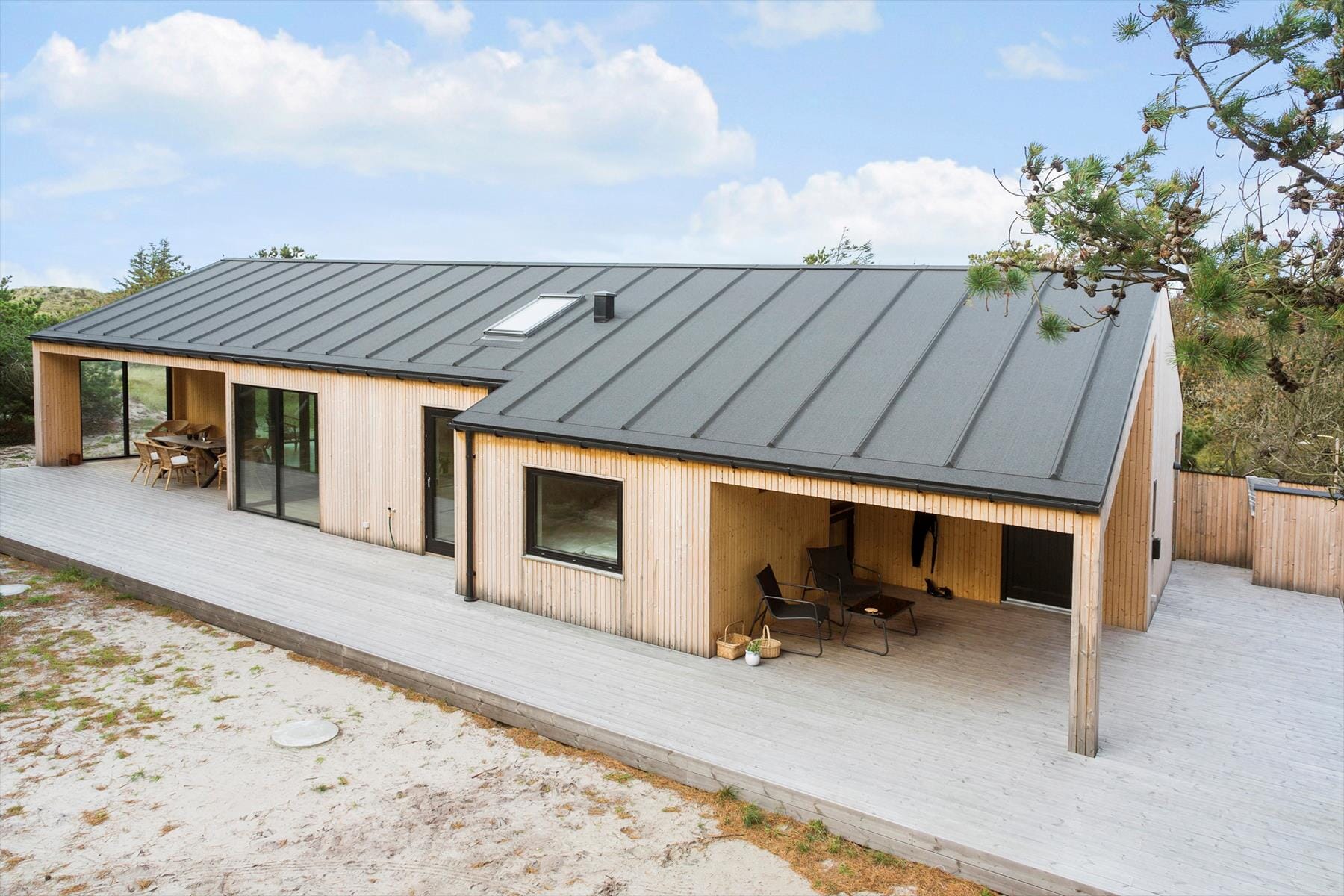 Moderne sommerhus med udsigt til klitlandskab og sauna