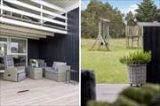 Udenfor venter en dejlig stor træterrasse med flere hyggelige kroge, hvor I kan nyde solens stråler og den friske havluft. Terrassen er perfekt til både morgenkaffen, eftermiddagens grillhygge og afslapning om aftenen. Der er god plads til både leg og afslapning, og de mange kroge giver mulighed for at finde læ for vinden eller skygge på en varm sommerdag. Grunden indbyder til udendørs aktiviteter, hvor hele familien kan boltre sig med forskellige havespil eller blot nyde roen og naturen omkring jer.