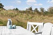 Udenfor fortsætter idyllen. Sommerhuset ligger på en dejlig klitgrund, hvor naturen er en del af oplevelsen. Her kan du lade børnene lege frit, mens du nyder solen på terrassen eller slapper af i en liggestol med udsigt til klitterne. Den rummelige terrasse er ideel til alt fra morgenkaffe i solen til hyggelige grillaftener under stjernehimlen. Atmosfæren på denne grund er præget af fred og ro, perfekt til dig, der ønsker at koble af og komme tæt på naturen.