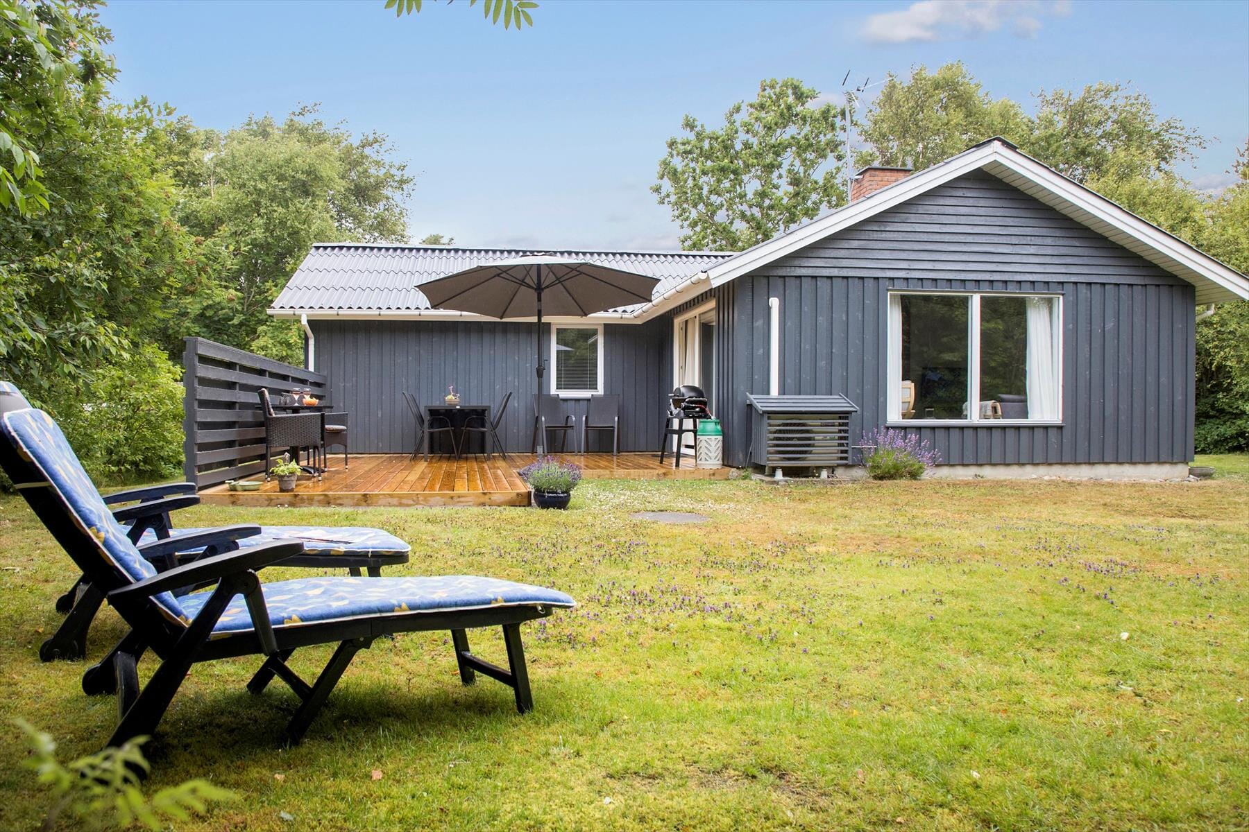 Hyggeligt sommerhus på stor, grøn grund ved Helligsø Drag