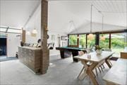 Indendørs, træder du ind i en oase af feriehygge og afslapning. Først møder du et stort køkken-alrum, som inviterer til lange morgener med hjemmelavede pandekager og aftener med delikate måltider og sjove spil billard. I den tilstødende stue finder du komfortable sofaer, hvor du kan synke ned og nyde hyggelige samtaler eller bare lade tankerne flyve frit.