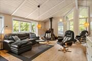Når du træder indenfor i sommerhuset, bliver du mødt af et lyst og venligt indre med store vinduespartier, der lukker lyset og naturen ind. Huset er indrettet med en gennemtænkt planløsning, der gør det velegnet til to familier. De åbne opholdsrum indbyder til fællesskab, mens værelserne giver plads til privatliv og ro. Stuen er husets naturlige samlingspunkt, hvor du kan slappe af i de bløde møbler og nyde udsigten til de rolige omgivelser. Køkkenet er åbent og veludstyret, så du let kan tilberede måltider, mens børnene leger i nærheden.