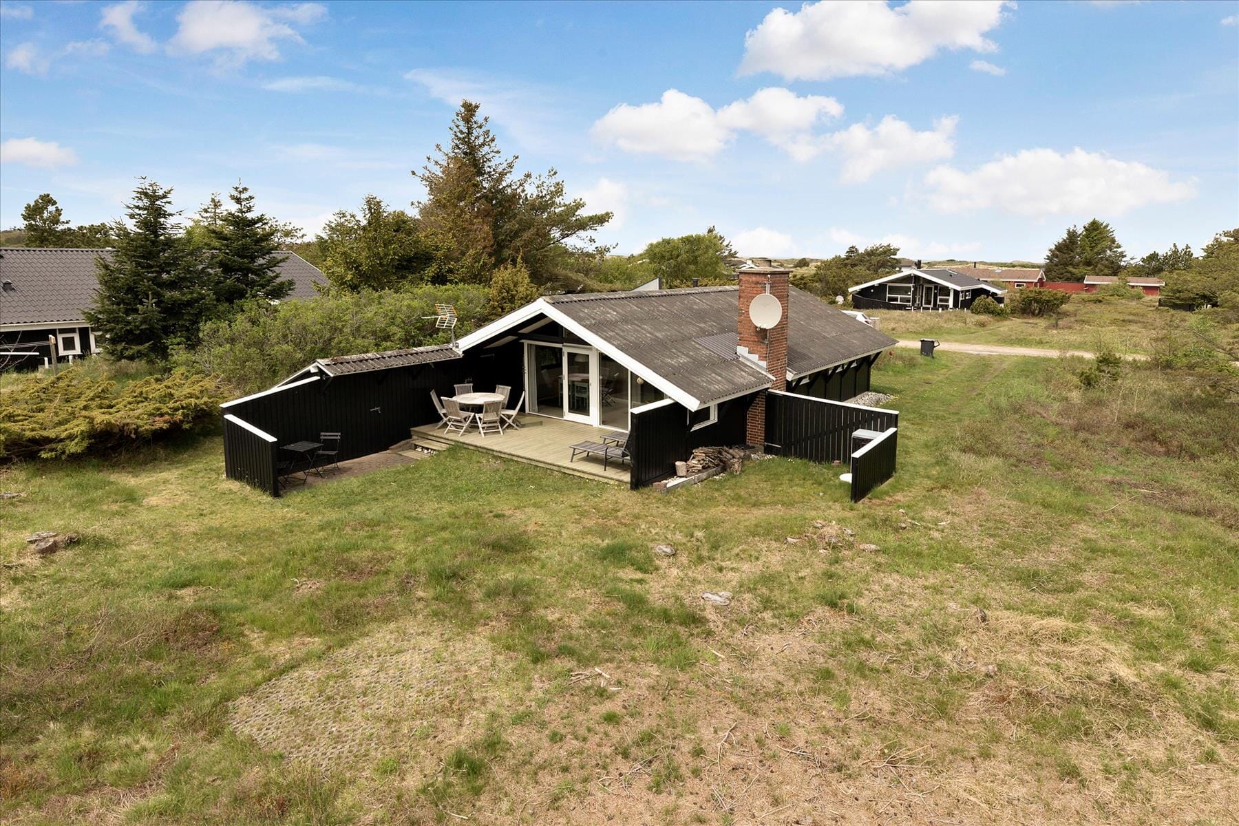 Dette sommerhus hører til i kategorien for ’småt med godt’! 68 velholdte og godt udnyttede m2 på en stille og rolig sommerhusvej lige uden for Tversted by. Sommerhuset er indrettet med pæne møbler og gode senge. Det har højt til loftet, og man kan nyde det flotte nordjyske lys, som strømmer ind ad det store vinduesparti i stuen. Stuen hænger sammen med køkkenet i ét stort opholdsrum, så man kan være sammen om de fleste aktiviteter. Den store og flotte brændeovn sørger for en hyggelig stemning, så her har man rig mulighed for at sætte tempoet lidt ned og nyde en god bog eller avisen for en stund. Sommerhuset har plads til fem overnattende personer fordelt på tre værelser, og badeværelset har brusekabine og gulvvarme. Desuden også vaskemaskine, så der er mulighed for hele tiden at have rent badetøj og håndklæder til turene i Vesterhavet. Dette sommerhus er en dejlig lille oase, hvor hyggen og samværet med familien i den grad er i højsædet.