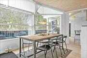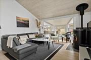 Når du træder indenfor, mødes du af et lyst og moderne interiør, der emmer af ro og hygge. Stuen og køkkenet ligger i åben forbindelse, hvilket skaber et dejligt rummeligt miljø, der er perfekt til at samles. Det lyse køkken er praktisk indrettet, så du nemt kan tilberede lækre feriemåltider, mens du samtidig kan følge med i samtalerne eller nyde udsigten til den omkringliggende natur. I stuen sørger pille ovnen for en ekstra hyggelig atmosfære, især når vejret byder på en kølig brise fra havet. De to badeværelser giver god plads til, at alle kan få deres egen ro, og en dejlig sauna venter på dig efter en lang dag med leg på stranden eller en cykeltur gennem de nærliggende klitter.